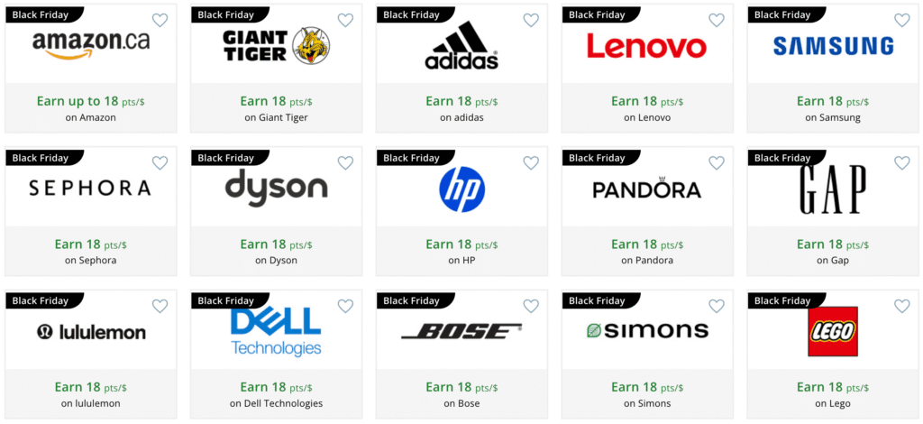 The eStore has finally been updated with retailer information, and, again, several stores are offering 18X the points when paired with an Aeroplan branded credit card. This may be their best Aeroplan Black Friday deal to date!